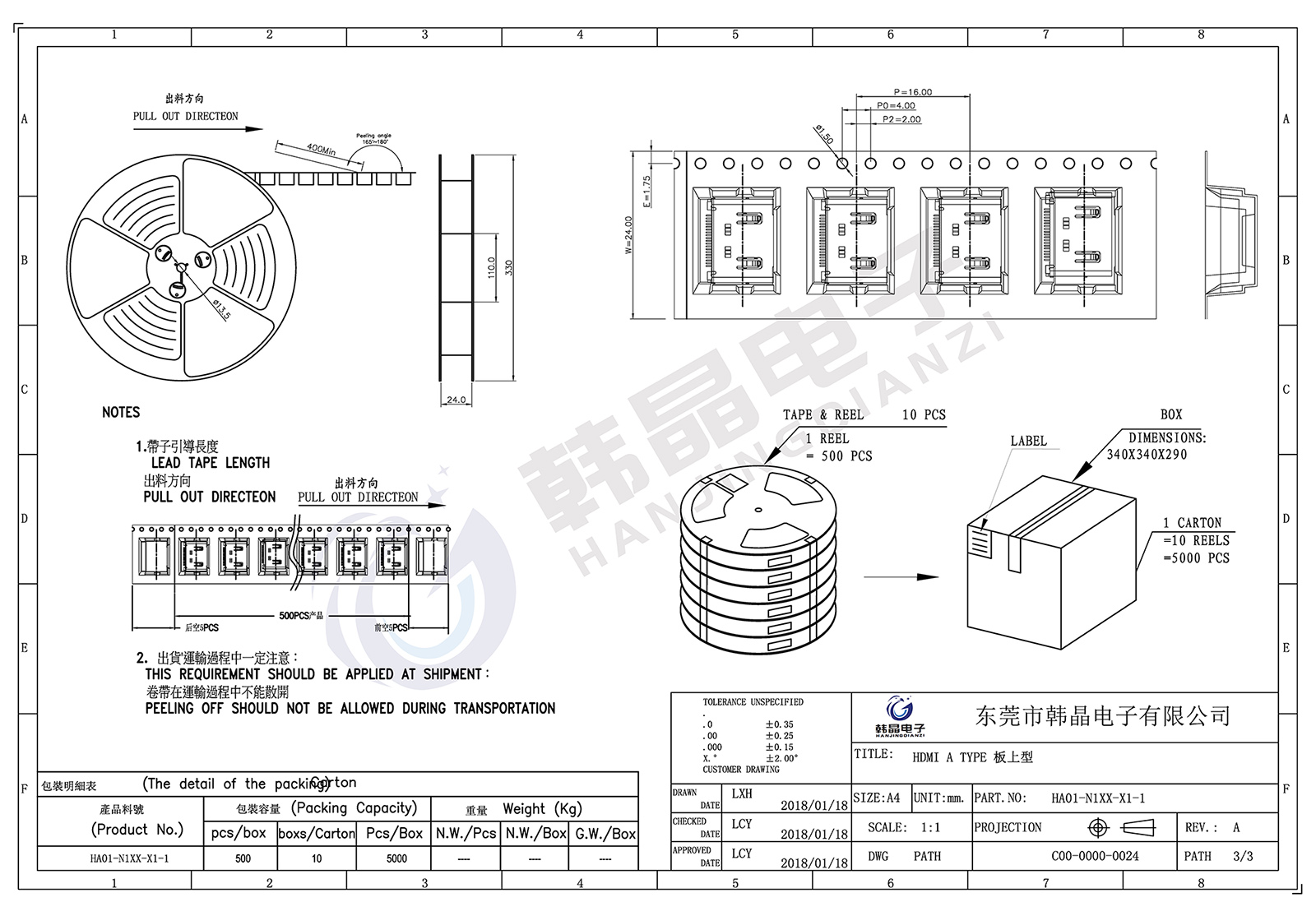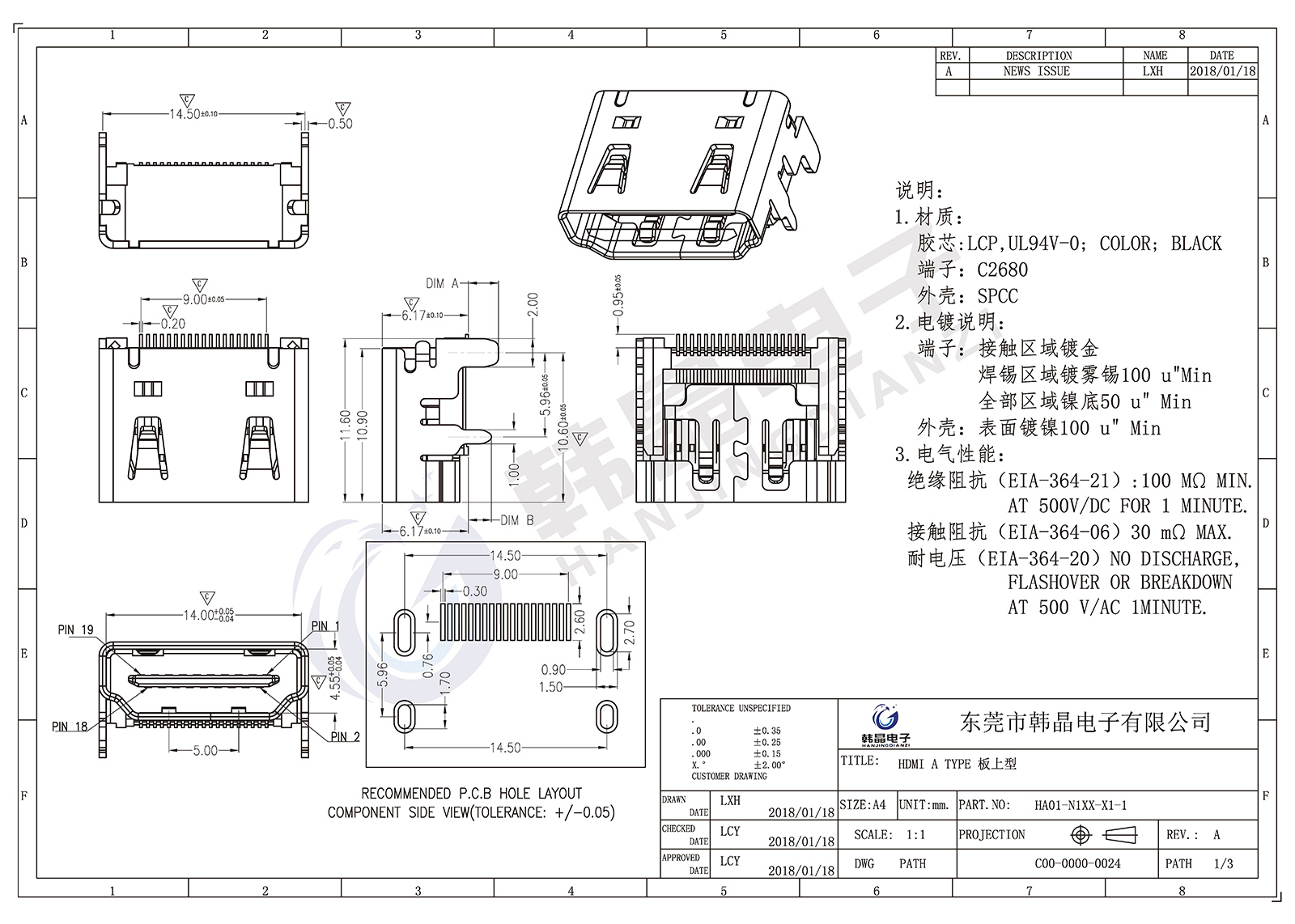 • HDMI A TYPE板上型 型號(hào):HA01-N1XX-X1-1