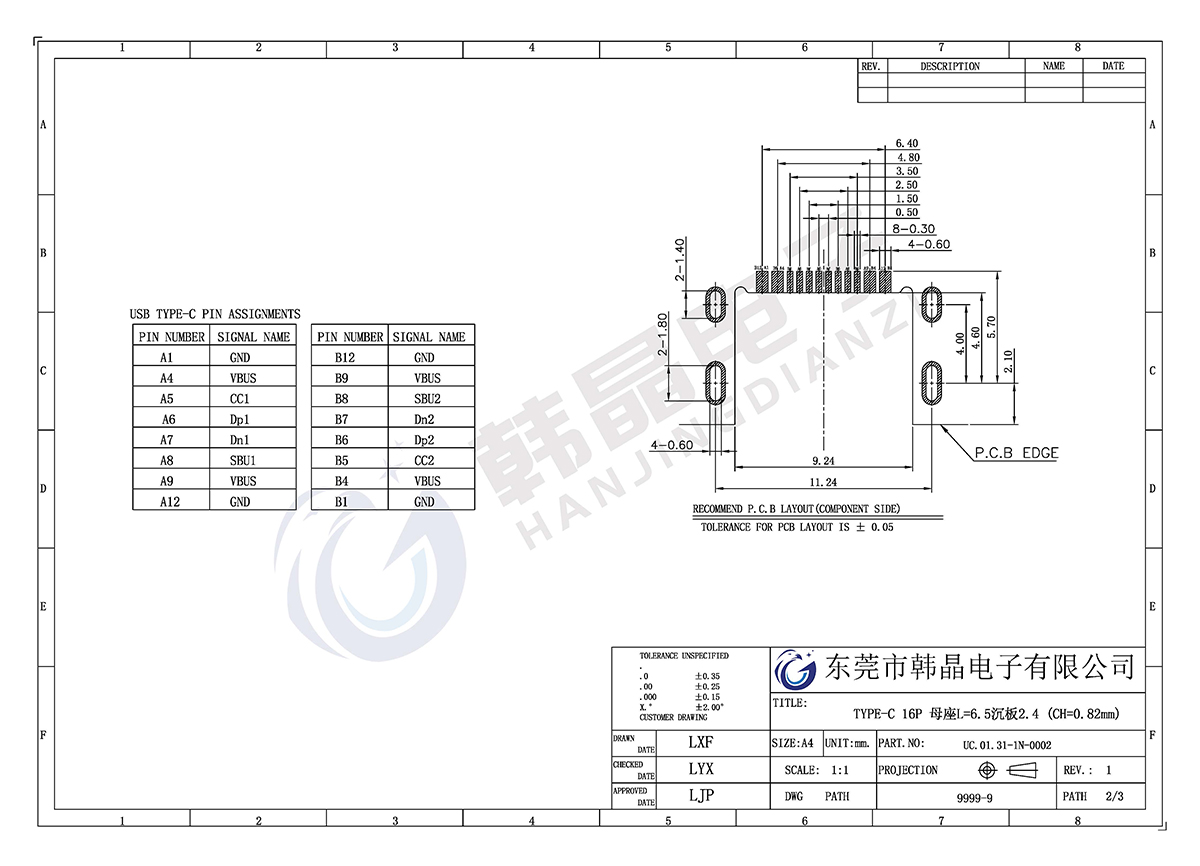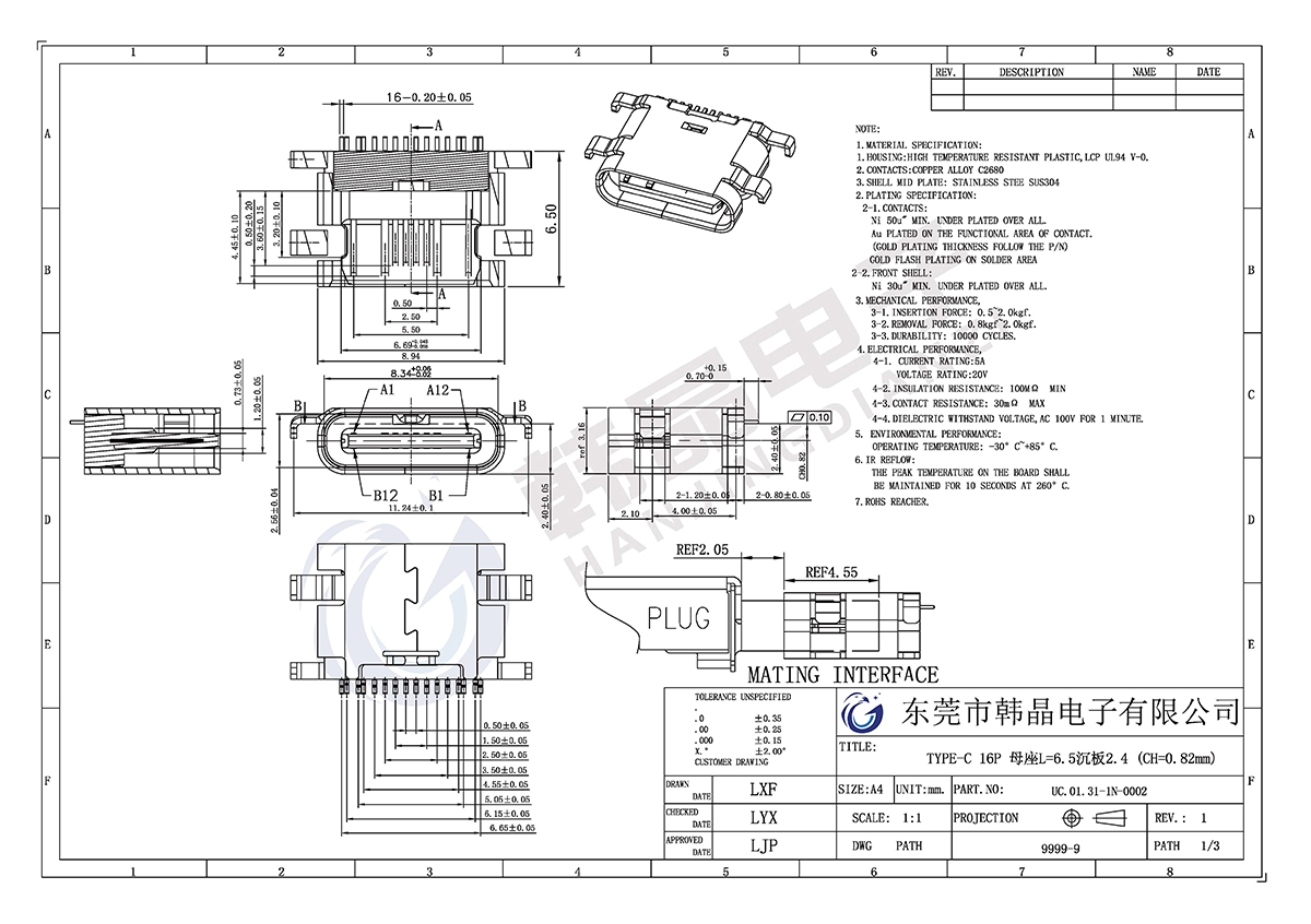 絕緣體材料: LCP,UL94V-0;COL0R;BLACK