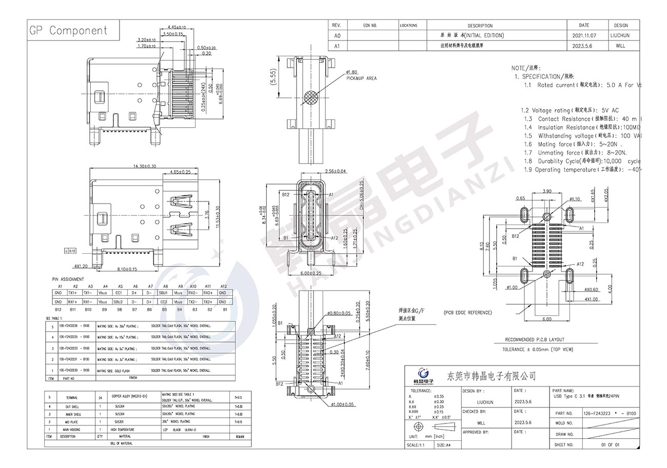 絕緣體材料: PA9T,UL94 V-0,BLACK