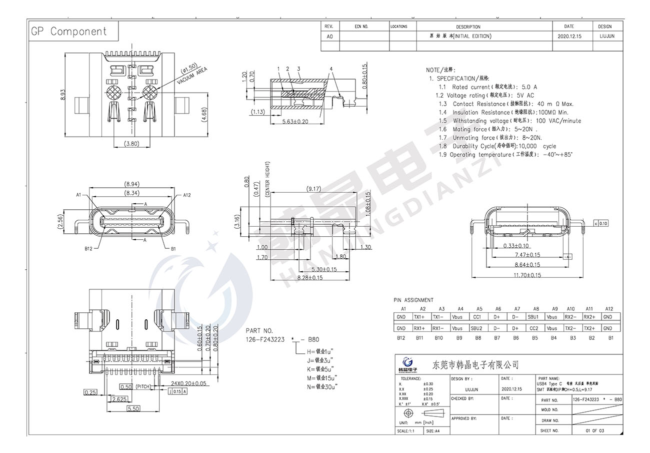 • 所屬分類:TYPE-C24P 臥式貼片系列