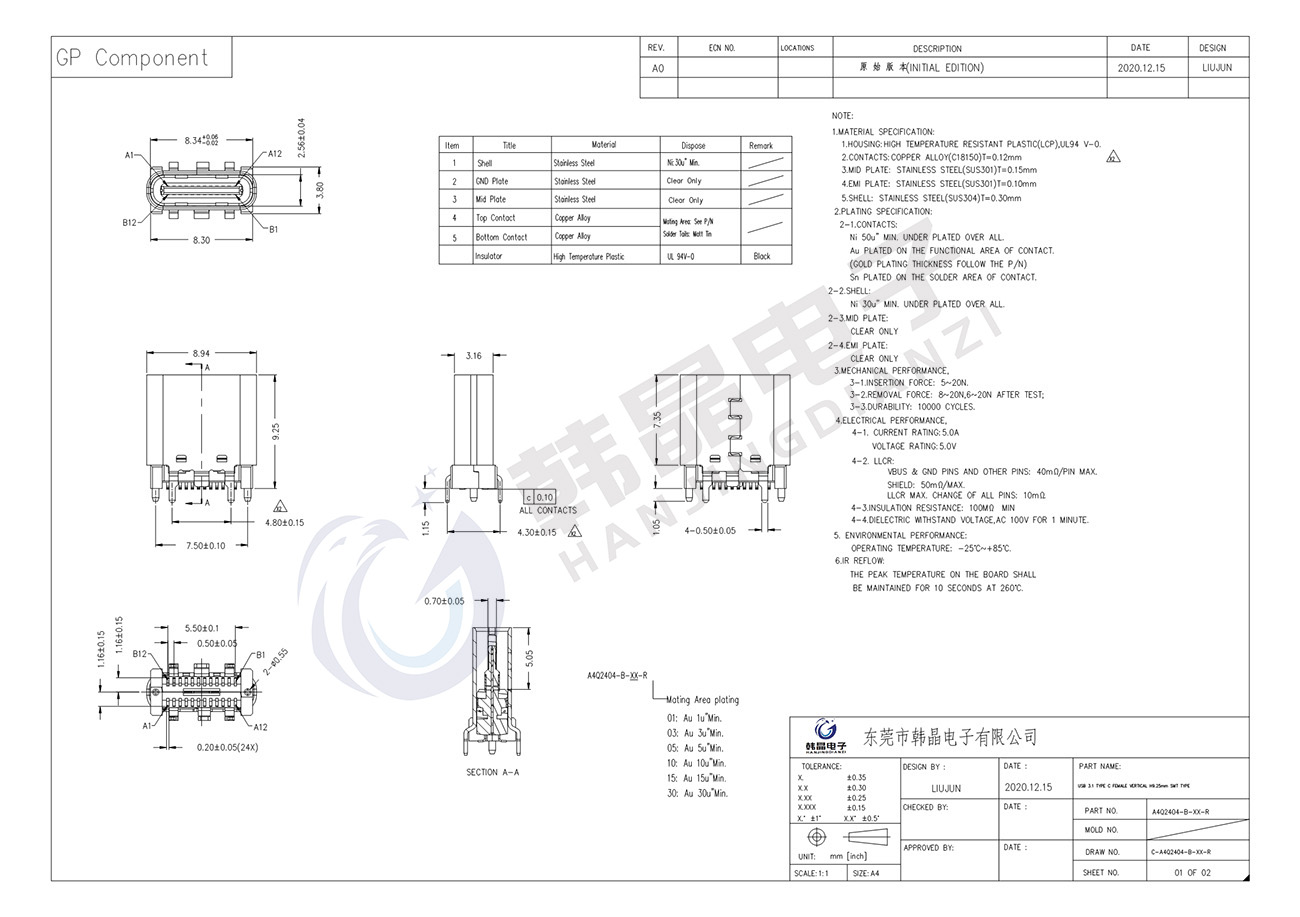 觸點(diǎn)電鍍: 金鍍鎳