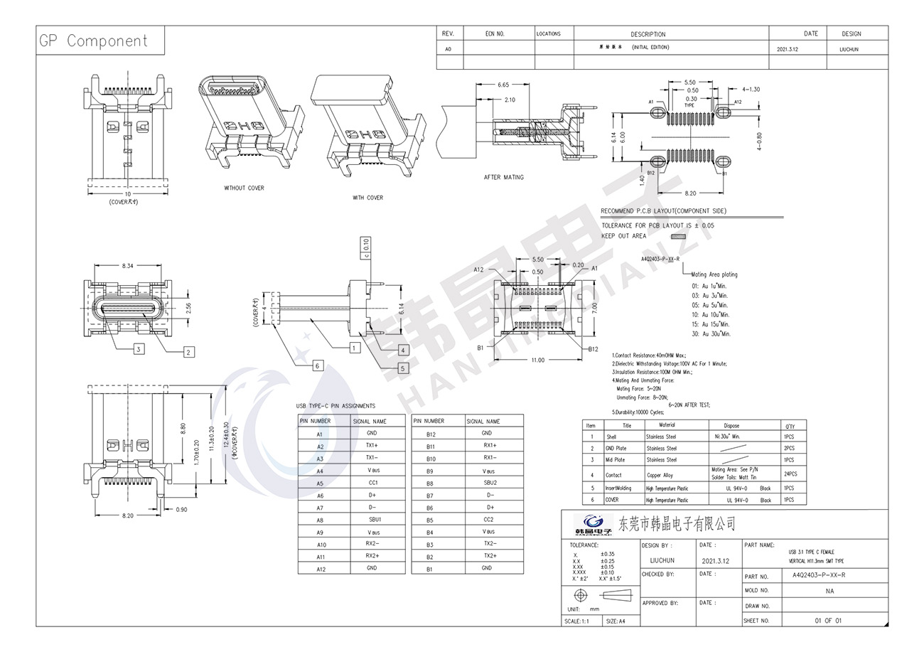 絕緣體材料: PA9T, ul94 v-0