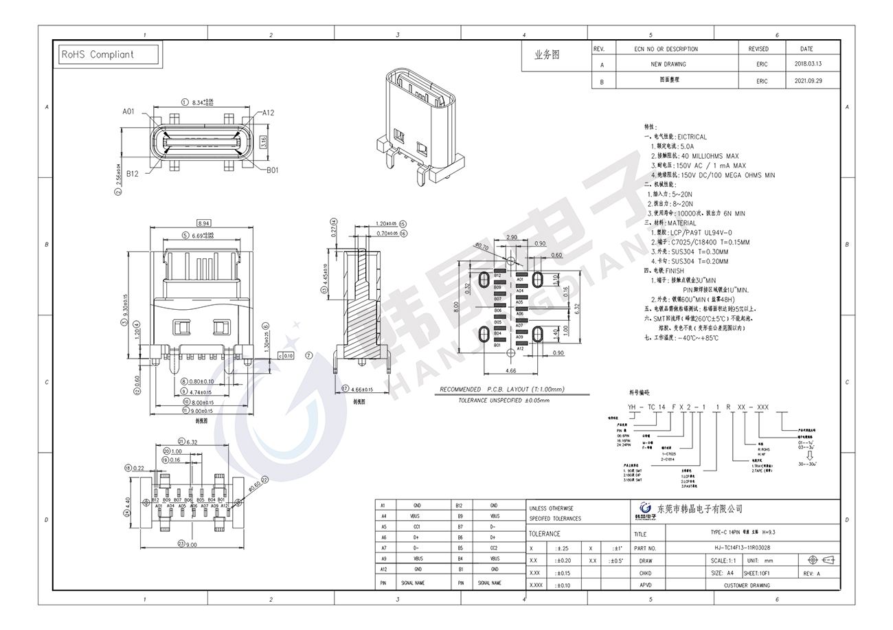 絕緣體材料: LCP, PA9T UL94 v-0