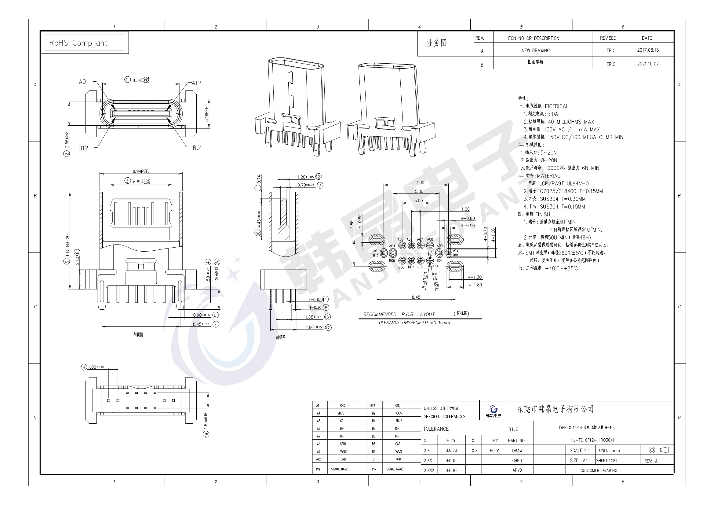 絕緣體材料: LCP, PA9T UL94 v-0