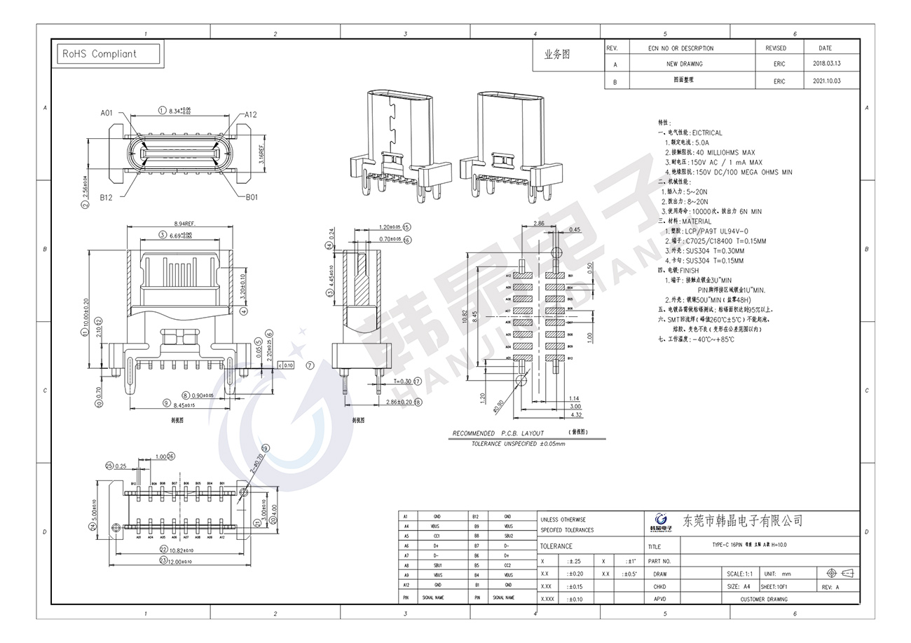 絕緣體材料: LCP, PA9T UL94 v-0