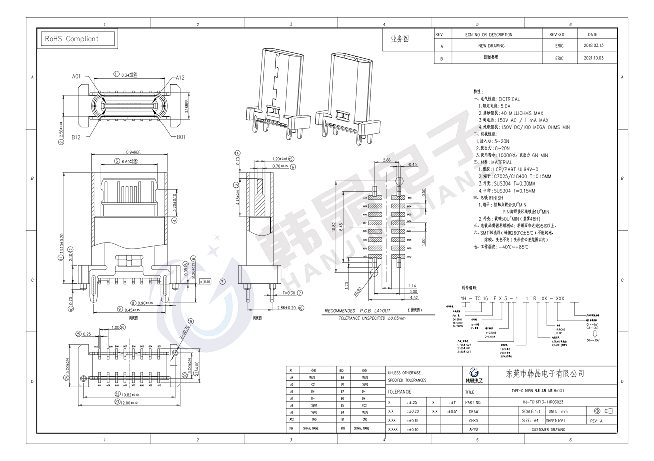 絕緣體材料: LCP, PA9T UL94 v-0