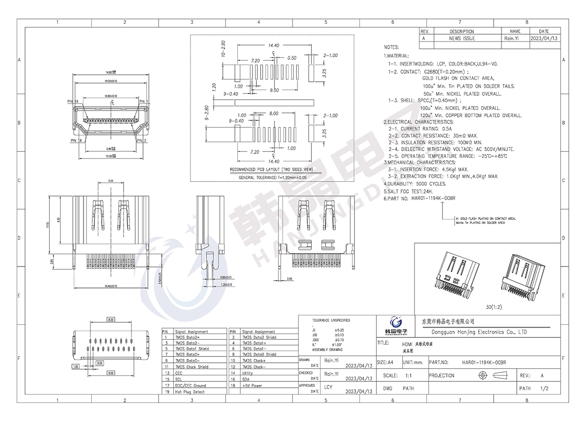 絕緣體材料: LCP,UL94V-0;COL0R;BLACK